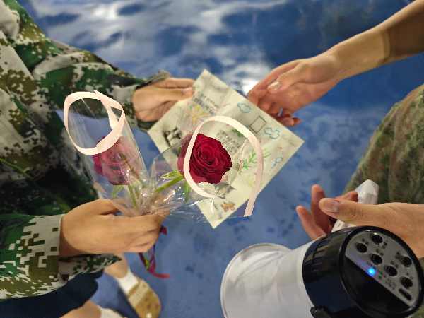 嘉鱼教学改革基地,军训教官带领2025级全体专科新生向辅导员们送上了一份特别的祝福。“祝老师烦恼无限少,人气节节高,生活不单调,每天带着笑,工资还比别人高!”在教官指挥下,训练场上响起激昂高亢的祝福声。新生代表向辅导员们献上鲜花和一张张满载真情的手写贺卡。“感谢您的耐心指导和关心照顾!”“我们会努力成为让您骄傲的学生!”辅导员们接过礼物,脸上洋溢着灿烂的笑容。军训教官表示,此次活动是新生们军训生活中一段温暖且美好的记忆,不仅增进了师生情谊,也有助于他们更快融入集体,感受到学校大家庭的温暖。新生们则纷纷表示,将以更加饱满的热情投入到接下来的学习和生活中,用实际行动回报老师的关爱与期望。