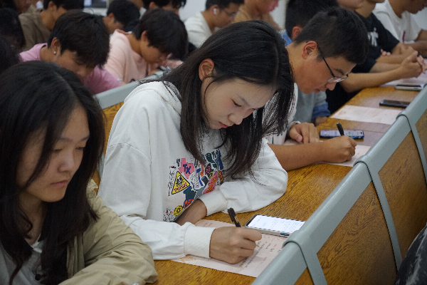 晚点名活动伊始,同学们在定制贺卡上写下父母生日和“想对父母说的一句话”,同时庄重写下自己的青春宣言,将感恩教育、家国情怀与成人成才教育相互融合。教室里,同学们神情专注,认真书写。在“想对父母说的一句话”一栏,同学们将内心深处的感恩与牵挂化作质朴而真挚的文字。有的同学写道:“父母含辛茹苦,养育之恩难忘,在大学我定努力学习,不辜负期望。”