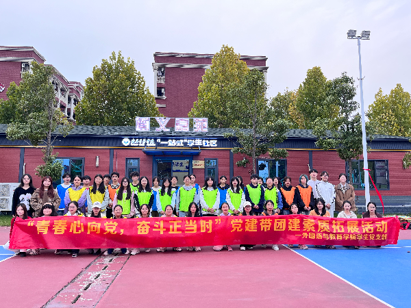 为加强大一新生理想信念教育,深化党团建设融合,10月31日,外国语与教育学院在嘉鱼教育改革基地“一站式社区”及新生宿舍区开展了“青春心向党,奋斗正当时”党建带团建素质拓展活动。活动由该院学生党支部书记昌丽娜老师带队,支部学生党员及大一共青团员代表参加。