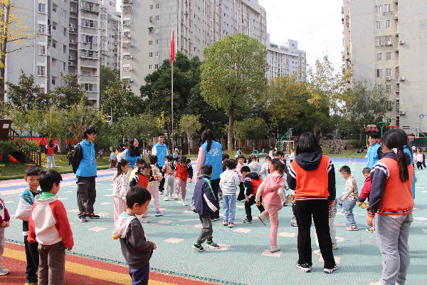 活动伊始,宣讲团成员们播放了《马兰花开》歌谣,让孩子们在律动的节奏中跳皮筋。志愿者们向孩子们讲解道,童谣中的“小皮球”暗喻我国第一颗原子弹,“开花”则象征着原子弹的成功爆炸,让小朋友们在游戏中领悟航天精神的深刻内涵。