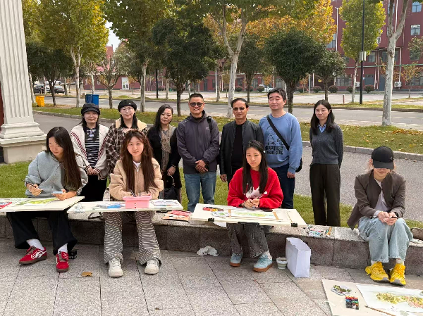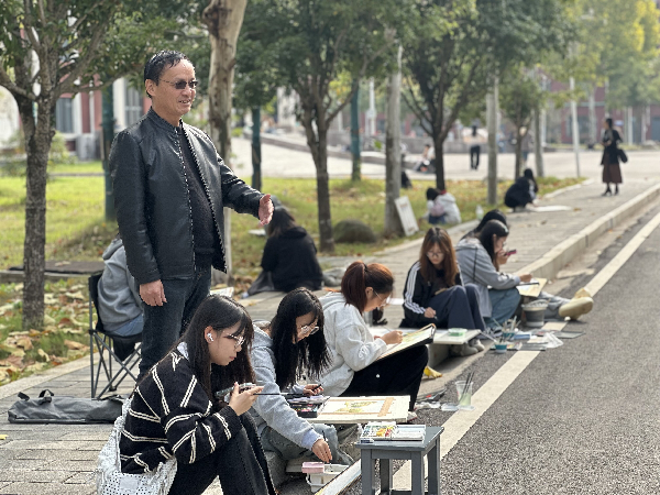 11月4日,艺术设计学院基础课程《基础色彩》创新教学模式,将课堂延伸至嘉鱼校区校园自然场景,2025级设计类八个班的学生开展了“校园水彩写生实践”户外课堂。嘉鱼教学改革基地常务副部长熊熹、艺术设计学院副院长肖巍现场指导,与师生共同探索色彩与校园自然风景的对话,通过沉浸式实践深化对色彩理论的理解,不断创新艺术教育形式。