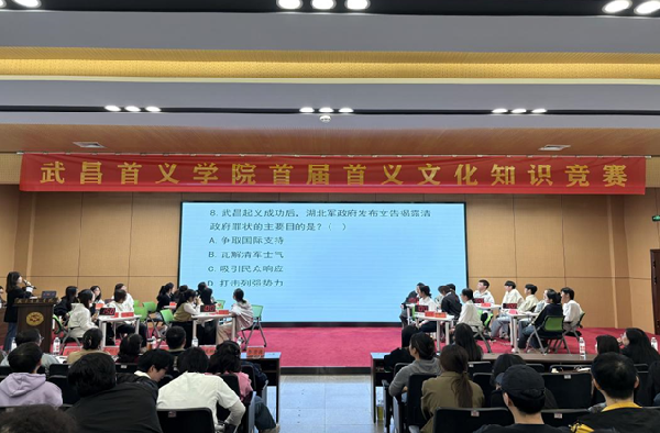 为深入追寻首义记忆,赓续红色精神血脉,11月15日下午,武昌首义学院首义文化知识竞赛初赛在成学楼106报告厅举行。本次竞赛由首义文化研究中心、校团委、学生处与马克思主义学院联合主办,秉持“以赛促学、以学促行”的办赛理念,自启动以来便在校园内掀起了学习首义历史、弘扬首义精神的热潮。