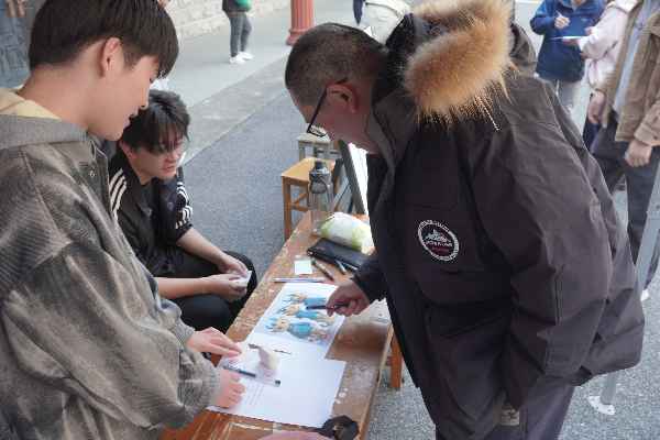 现场拉票环节,参赛队伍各显神通,用富有感染力的讲解,为自己的作品拉票。投票区人头攒动,师生们在每一个IP形象展台前驻足,或讨论设计的巧思,或赞赏创意的新颖,现场氛围热烈而融洽,每个人都为自己心仪的作品投下了宝贵一票。