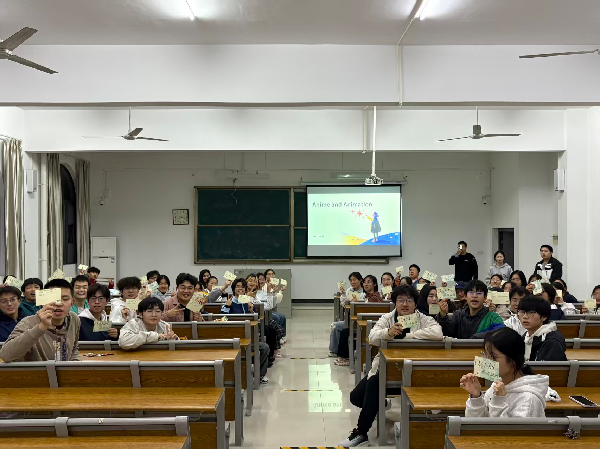 第50期活动以“Anime and Animation”为主题,由朱颜老师负责。活动将动漫文化与英语学习巧妙融合,从中日动漫文化差异引入,迅速引发了同学们的兴趣。“动漫故事分享”环节,同学们用英语介绍《美少女战士》《灌篮高手》等经典作品;“动漫配音挑战”环节,《雾山五行》《吞噬星空》等作品的经典台词被生动演绎;分组讨论环节,同学们用英语探讨各国动漫风格特点,在思维碰撞中加深对多元文化的理解。活动全程密集的英语交流,有效提升了同学们的英语表达能力。
