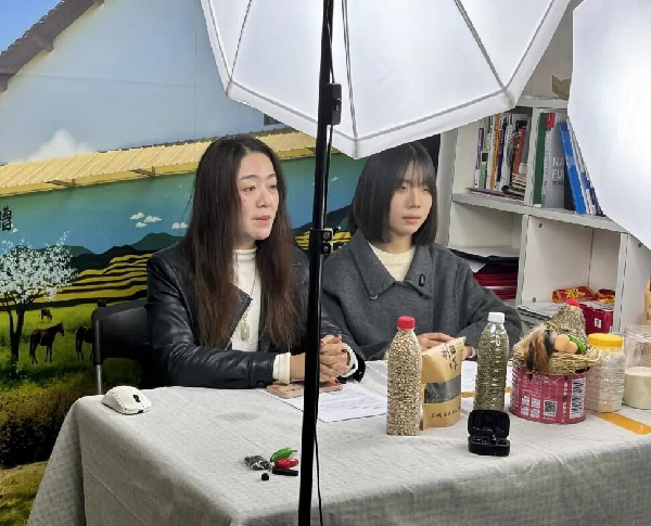 京山市“马岭村助农电商团队”受邀参与互动,校友、京山马岭村驻村干部胡颖波与高金彪探讨校地合作模式。高金彪提出严控产品选品标准、培养能坚持每日直播的“带头人”两大建议,打造稳固的农村直播阵地。