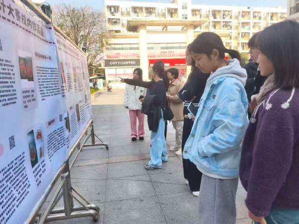 观展过程中,教师们围绕“菌种筛选标准”“培养条件对图案的影响”等专业细节与项目成员深度交流,并对作品给予了高度认可。其中,“智绘中国跨越路”“菌语丹青”等作品既贴合主题,又兼具家国情怀与青春创意,以微生物为载体的创作形式,更实现了科学与艺术的巧妙碰撞。冯仲仁表示,此次作品展不仅是新工科项目的成果展示,更有效推动了专业知识与创意能力的融合提升。