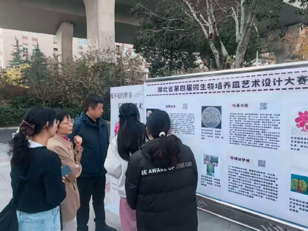 12月1日,城市建设学院入选的新工科实践项目“微生物培养皿艺术绘画”作品展在武昌校区西区广场开展。教务处处长张小菊、学工处处长汪晓航,城市建设学院院长冯仲仁、党总支书记高霞、分团委书记刘腾子、环境生物与水工程系主任郑莹、项目负责人王爱琴、专业教师王绪霞及师生代表到场,共同观摩这场“微生物+艺术+AI”跨界融合创意盛宴。