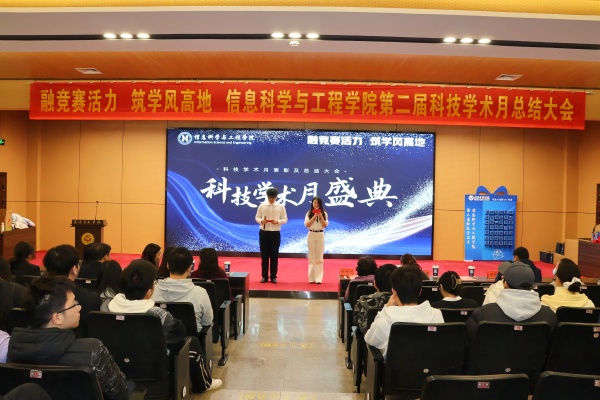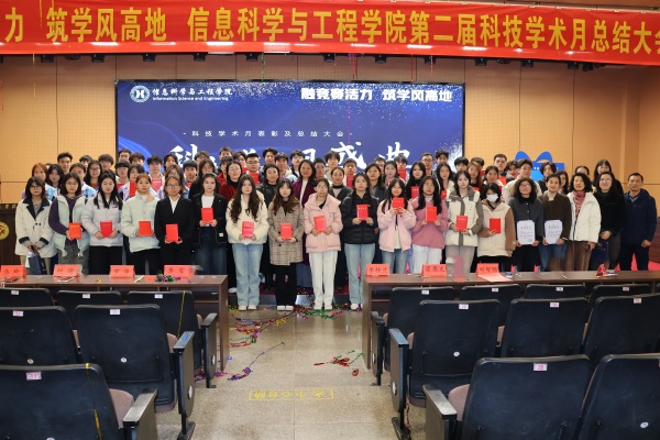 12月10日中午,信息科学与工程学院第二届科技学术月总结大会在成学楼106报告厅举行。副校长李桂兰、校党委副书记李雪,校团委书记罗萍,信科学院党总支书记赵瑜及班子成员出席,全院200余名师生代表参会。