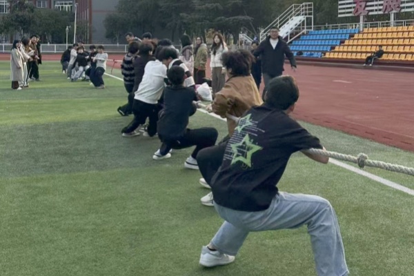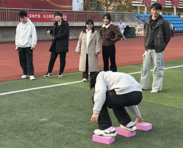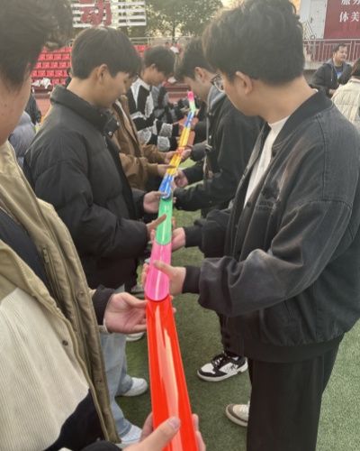 本次班会突破传统课堂边界,以户外集体运动为载体,构建“体育强体魄、协作聚人心、疗愈舒心灵”的综合育人场景。在辅导员协作组织下,三项兼具趣味性与挑战性的团队项目有序开展。“绳”采飞扬·班级聚力拔河赛率先展开,全体同学紧握长绳、步伐统一,在力量对抗中锤炼意志品质,彰显团结精神。步步为“赢”·泡沫砖接力赛注重策略配合,小组成员协同推进、稳中求进,在动态协作中提升责任意识与沟通能力。“珠行万里”环节则聚焦精准传递,引导学生于耐心流转中领悟包容互助的深层价值。三个项目有机衔接、层层递进,将身体锻炼与心理调适深度融合,让学生在挥洒汗水中疏解学业压力,在团队共进中增强心理韧性。