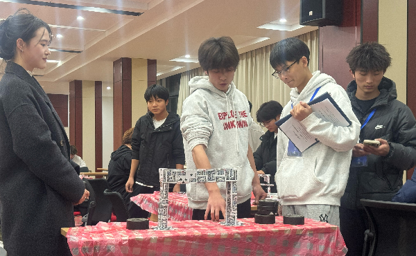为推动学术科技与实践创新融合,激发学生科创热情,营造“以学促创、以赛促练”的良好氛围,12月17日,由校团委主办、城市建设学院分团委承办的第二十二届大学生科技学术节“巧筑云桥”纸牌结构承重大赛决赛在嘉鱼教学改革基地举行。嘉鱼教学改革基地党总支副书记秦琦、张晶,城市建设学院分团委书记刘腾子,专业课教师余鹏、赵载文,指导老师蔡雅晶及各年级辅导员参加活动并担任评委。