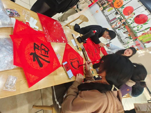 活动现场还精心设置了丰富多样的配套环节,为这个冬日增添了更多欢快气氛。书法协会的同学们现场挥毫泼墨,将一幅幅饱含祝福的“福”字赠予师生,墨香四溢,传递着浓浓的节日祝福;社联组织的投壶游戏趣味十足,吸引了大批同学参与,大家在游戏中尽情欢笑,释放青春活力。
