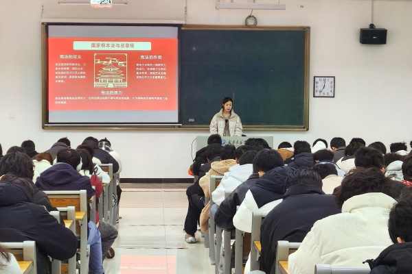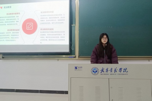 嘉鱼教学改革基地党总支副书记、晶姐微思政辅导员工作室主持人张晶表示,宪法是国家的根本法,是治国安邦的总章程,加强宪法教育对于引导青年学生树立正确的国家观和法治观至关重要。她充分肯定了“朋辈引领”的宣讲形式,认为由法学专业学生利用晚点名进行“身边人讲身边理”,不仅形式新颖,更能有效激发同学们的学法热情,是思政教育与法治教育深度融合的生动实践。