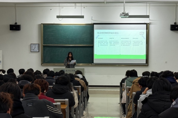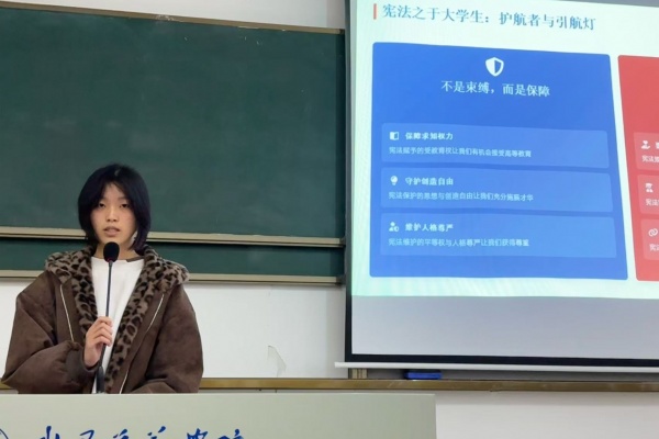 宣讲伊始,宣讲团成员以“人生章程”为喻,生动诠释宪法的现实意义。他们指出,宪法并非遥不可及的宏大文本,而是从同学们踏入大学校园开始,就始终守护成长轨迹的“法治护航者”。围绕这一核心认知,成员们重点解读了宪法赋予公民的受教育权,这一权利既是同学们端坐课堂求知问学的根本法治保障,也对应着努力学习、提升本领、成长为合格建设者的责任义务。同时,宣讲团成员详细阐释了宪法保障的平等权与自由权,明确其为同学们开展学术探索、参与学生活动、规划职业发展提供了公平竞争环境与广阔发展空间。宣讲员结合自身学习实践经历倡议同学们,将个人青春奋斗融入国家发展洪流,以实际行动践行宪法对新时代青年的殷切期待。