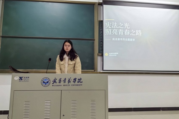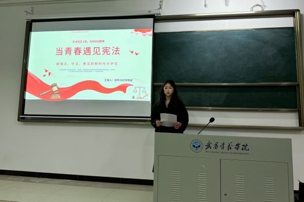本次宪法主题宣讲成员由新闻与文法学院法学专业宋凯莉、张子琪等7名学生组成,他们化身“宪法宣传员”,紧密结合大学生成长,通过通俗易懂的语言解读法理、以生动鲜活的案例阐释条文,引导同学们自觉尊崇宪法、认真学习宪法、严格遵守宪法、坚定维护宪法。