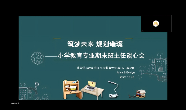 12月30日,外国语与教育学院小学教育专业2401班班主任王培和2402班班主任曹苗佳美召开了“筑梦未来”主题期末班主任谈心会。为切实了解学生当前的困惑与需求,使分享内容更具针对性,两位老师会前在各自班级发放了问卷,就学业压力、兴趣发展及现实困扰等方面进行了深入调研,旨在直击学生痛点,提供务实指导。