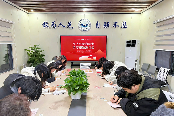 活动尾声,全体党员提笔写下2026年成长寄语和奋斗誓言。大家将对新年贺词的深刻感悟融入对自己的未来期许,既有对专业深耕的笃定规划,也有对时代使命的主动担当。一张张承载初心的心愿卡片,不仅是青年党员对未来的美好憧憬,更是对“青春建功跟党走”誓言的生动践行。