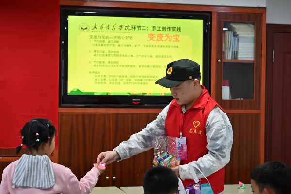 来自工程造价2401的志愿者瞿胜刚感慨道:“在指导孩子们制作手工的过程中,我感受到了他们无限的创造力和对环保的浓厚兴趣。每一个孩子都像是一颗充满能量的种子,只要我们用心浇灌,环保的理念就会在他们心中生根发芽。这次活动让我更加坚定了继续参与志愿服务的决心,希望以后能有更多机会和孩子们一起探索环保的奥秘。”