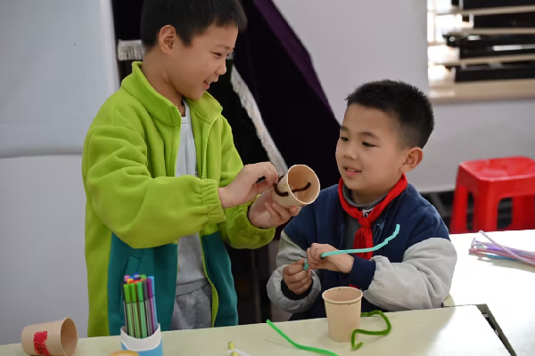 一年级的刘杨安泽小朋友兴奋地挥舞着小手,眼睛亮晶晶地说道:“我今天用纸杯做了超级可爱的小笔筒,还在上面画了我最喜欢的奥特曼!原来垃圾真的可以变成宝贝,我以后要告诉爸爸妈妈,让他们也一起把垃圾分类,保护我们的地球!”稚嫩又认真的模样,仿佛已经成为了环保小卫士。