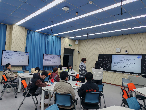 互动环节,同学们以国家文化盲盒分享、书籍场景情景对话为形式,围绕书籍推荐、趣味吐槽等主题分组创作并演绎英文小对话,巧用AI工具答疑解惑、优化表达,顺利完成演绎。自由交流环节,大家围绕书籍与国家文化思想的关联、英文原著与译作的阅读选择等话题各抒己见,不少同学在轻松氛围中突破自我,从拘谨羞涩到勇敢开口,在实践中切实锻炼口语能力。