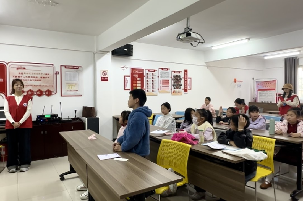为传承雷锋精神,深化志愿服务内涵,推动专业学习与社会实践深度融合,外国语与教育学院依托三月学雷锋系列主题活动,联合通惠社区开展了“学雷锋・学英语”英语口语提升公益课堂。首场教学活动由钟欣怡主讲,李佳颖、胡珊珊、陈文婷协助教学,带领17名社区儿童走进趣味情绪英语课堂,在轻松学习中感受语言魅力。