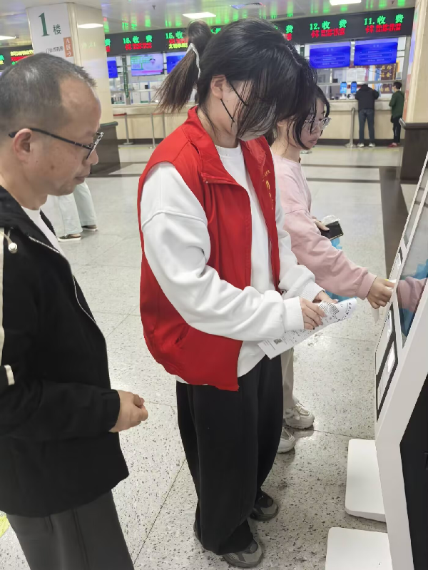 为期三天的活动中,身着红马甲的“星火”志愿者们忙碌于医院各个角落:门诊入口与自助服务区,他们耐心协助患者完成挂号、缴费等操作,有效缓解了窗口压力;科室走廊里,他们主动搀扶行动不便的老人,往返于不同诊室之间;候诊区内,他们细心维护秩序,为焦急的家属递上温水,送上暖心安慰。本次活动累计服务时长超18小时,服务患者千余人次。志愿者们舍弃了假期出游与休息时间,用实际行动践行了“奉献、友爱、互助、进步”的志愿精神。