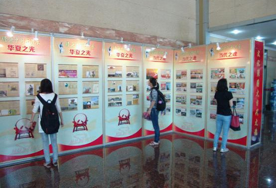 继4月读书月,图书馆举办了大型阅读活动后,日前,馆内展出精美图片,宣扬爱国精神,大力弘扬和发展中华民族传统文化。