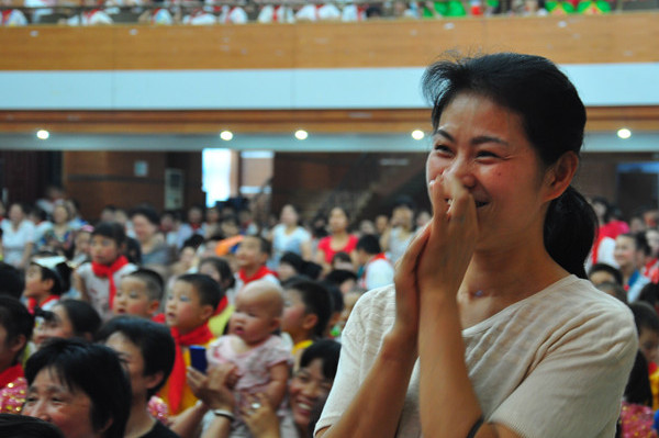 快节奏的生活让不少家长缺少时间陪孩子。来自黄冈市浠水县的李女士谈到孩子们的节目时,连连感叹“还是孩子有活力”,“平常工作忙,夫妻二人没有很多时间陪孩子,这次孩子演出,特地来看他的表演,趁节日好好陪下孩子”。家住洪山区的王女士童心大发,戴起了儿子头上的兔子装饰,和儿子一起扮鬼脸合影留念。王女士笑着说:“平常压力大,难得趁着这个机会和孩子一起玩。”