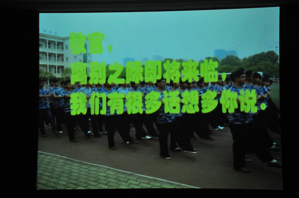晚会上,新生们给教官们送上了自制的视频以作中秋祝福,“我会进步,伴着您的祝福,希望您也好好过,多年之后再相见时能忆起彼此。”视频里传达出来的感谢的、不舍的话语让几位教官都有些动容。
