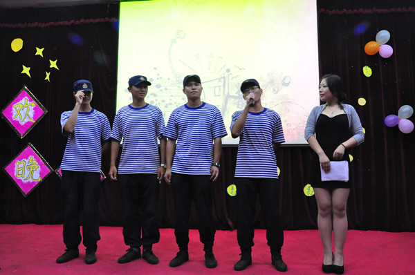 在主持人的邀请下,教官们用《最炫民族风》的歌声搭配军旅拳表演的方式表达了对同学们的感谢。随后,啦啦操表演、吉他独奏等,大二的学生为新生送上了特殊的中秋礼物。互动小游戏“你来比划我来猜”、“我爱记歌词”将晚会推向另一个高潮,最后晚会在大一两位新生张凡和蒋文忠介绍自己家乡的中秋习俗中圆满结束。