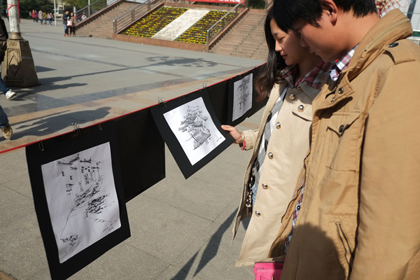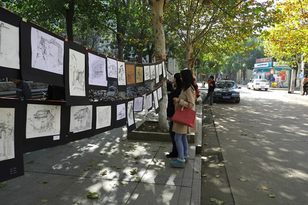 不出校园门,也能看到千里之外的风景。11月27日,艺术设计学院学子在中区广场上举办风景写生展,将写生风景“搬”入校园。