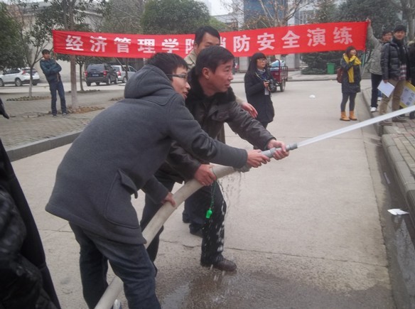 原来,这是经济管理学院分团委组织的消防逃生演习活动。