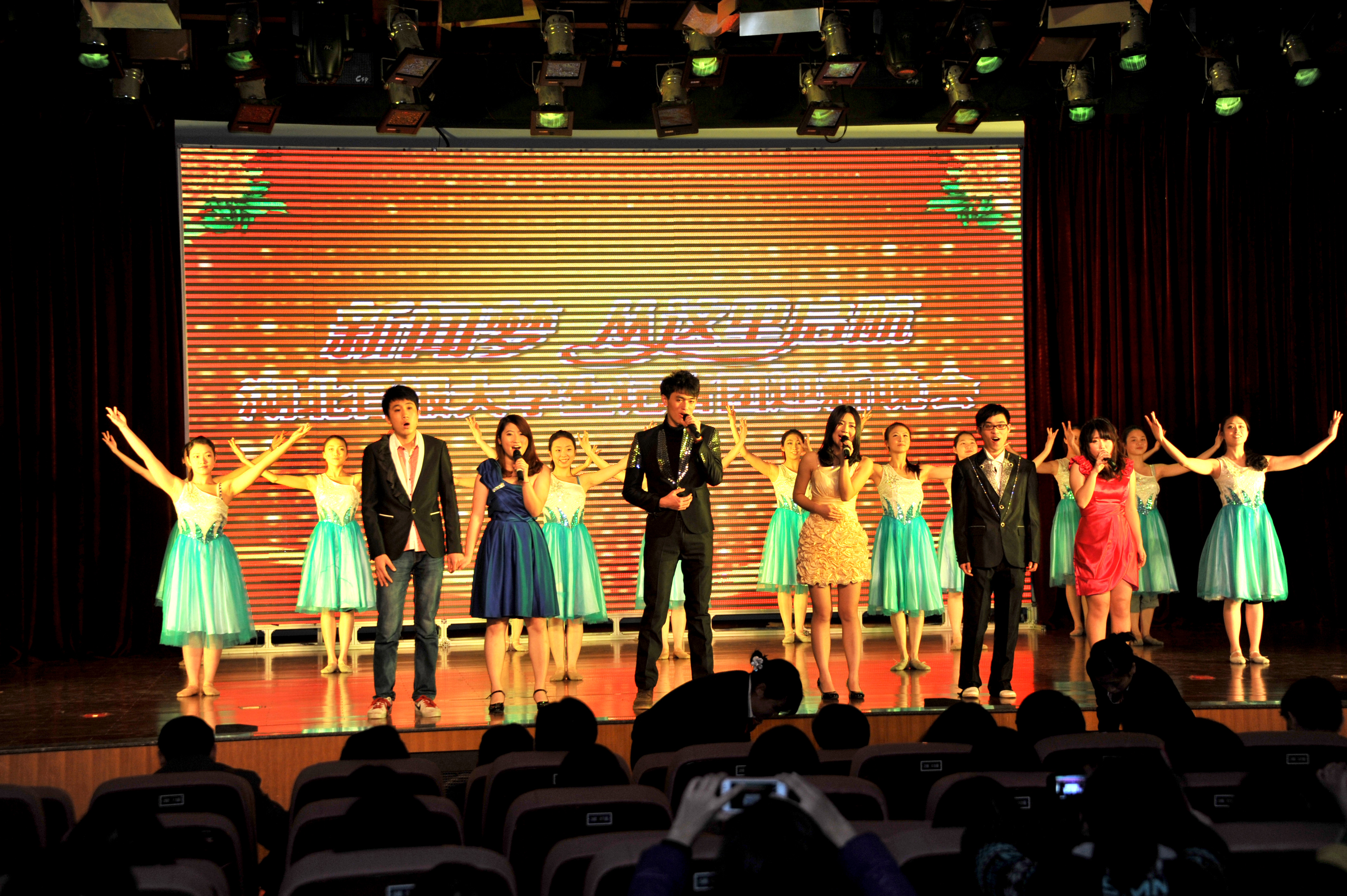 “相逢是首歌,眼睛是春天的海,青春是绿色的河,同行是你和我。”晚会上,我校新闻中心记者团表演合唱《相逢是首歌》,博得在场观众的热烈掌声。