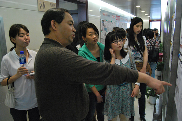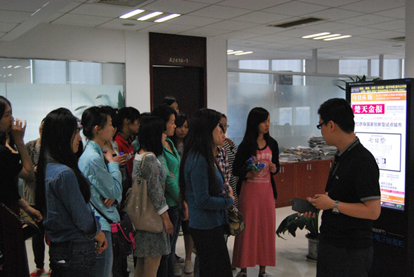 在湖北日报党办负责人刘斐的陪同下,同学们依次参观了《楚天都市报》、《楚天金报》、《荆楚网》、《大楚网》等多家报纸网站,深入了解了报纸内部的细化分工及运营管理,听取了各报社工作和管理人员对报纸网站发展的深入剖析,和未来对新闻从业人员的要求,从实际中领悟自身差距与不足。