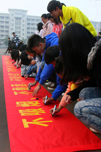 最后,同学们在“七不准”横幅上签名,表达将严格遵守规则的决心。外语系党总支副书记杨芳说,本次活动是为了深入推进2013级学生入学教育计划顺利实施,培养大学生爱国主义情怀,提升集体荣誉感和民族责任感。