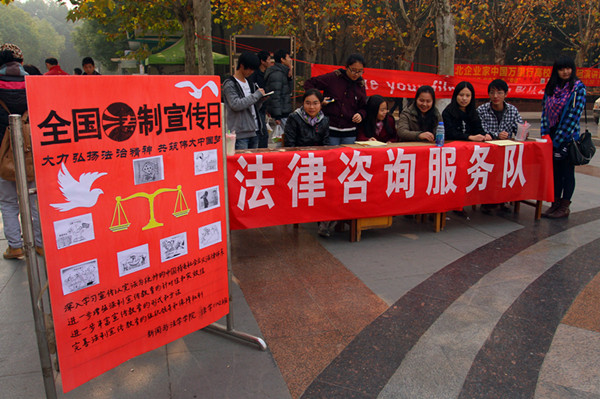 据悉,在“12·4”法制宣传日进行法制咨询是学校法学系的常规实践活动,但这是首次在学校设点,希望能为其他系的同学解决问题,提升其法律意识。