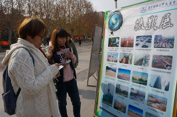 一个个手持施工图纸的建筑师,神情严峻;一排排刚刚浇筑的水泥桩管,整齐如一;一个个在工地搭设的脚手架,刚硬挺拔……一幅幅反映工科学子学习生活的照片被永恒地雕刻在了光影艺术中,引得现场聚集了大批观众。据了解,这次活动是由城市建设学院组织,像这样的专业性摄影展活动在武汉高校内还是少有。