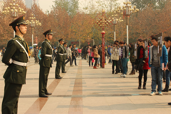 12月13日是侵华日军南京大屠杀30万同胞遇难76周年纪念日。中午,国旗班身着整洁军装在中区广场沉痛吊念,牢记历史,不忘国耻。