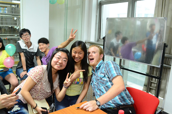 整场活动轻松活泼,交谈内容涉及食物,音乐,学习,教育,文化等诸多方面。中外学生还现场开始了才艺大比拼。Alison弹起了吉他,其他外国学生跟着伴奏,打拍子。博得彩声阵阵,中国学生也礼貌的回赠了一曲边唱边弹的《有没有人曾告诉你》,再次重现经典。