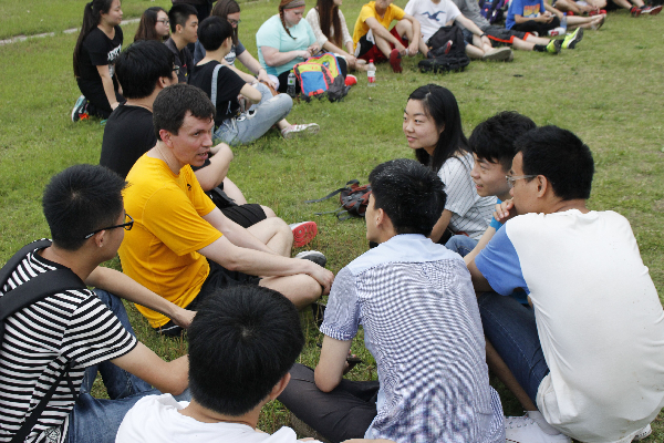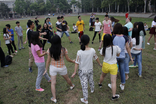 5月26号晚,来自美国爱荷华州的10名大学生,与我校学生在11栋草坪前开展英语角活动,一系列别开生面的游戏让中美大学生在零距离交流中很快成为了朋友。