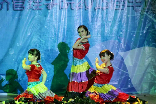 梦幻般的灯光下,荧光棒的应援中,爵士舞的节奏顿时引来一片片尖叫声,一下子把气氛点燃,晚会序幕就此拉开。晚会节目内容丰富多彩,程馨玥和陈旭舟等人带来的活力四射火辣十足的爵士舞牢牢地吸引同学们的眼球。而搞笑版的《喀秋莎》,无论是服装上的差异还是演员动作的滑稽都不时地引起阵阵爆笑。之后几位同学用萨克斯等乐器演奏的《天空之城》和易水寒等同学带来的音乐剧《匆匆那年》弥漫着淡淡的忧伤,使得现场陷入了长时间的沉默。