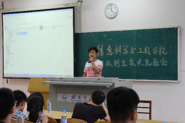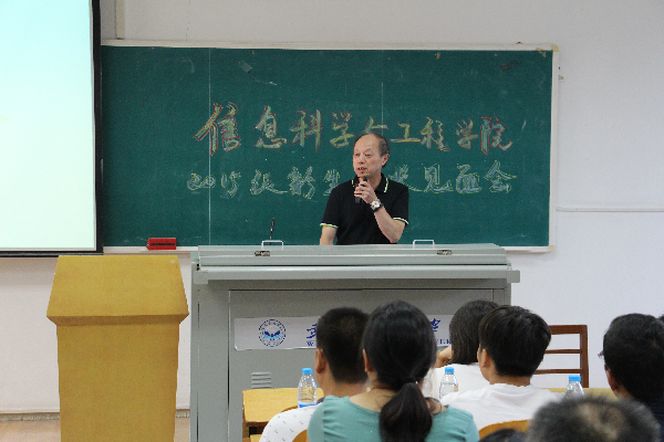 9月7日下午,信息科学与工程学院2015级新生家长见面会于11-203教室举行。院长黄瑞光,副院长聂兵,各教研室、实验中心负责人,新生辅导员、班主任与新生和家长首次见面。分团委书记汪晓航主持见面会。