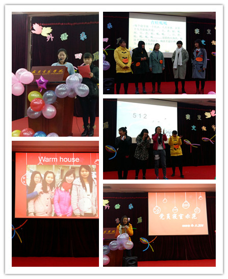 决赛分四个环节,各参赛寝室精心布置,展示了各自的风采和室友之间的默契。第一项是寝室自我介绍,寝室代表声情并茂,语言幽默风趣,各具特色,博得观众一致好评;第二部分是才艺展示,寝室成员团结协作,演绎各自才能,有小品,歌曲、吉他弹奏等,丰富多彩;第三部分是团体大比拼,有百科知识竞答、英语巧翻、青蛙呱呱呱、你比我猜四个环节,主要考察寝室成员的协作能力、专业基础和默契度,特别是“英语巧翻”小游戏中,参赛选手根据大屏幕上给出的英文谚语找出对应的中文翻译,把所学的知识应用于游戏中,新奇的游戏吸引了大家的注意,选手们和台下的观众一起做题,一时间场面热闹;第四部分是人气我最旺,结合空间点赞和现场观众的投票选出最美寝室。随后三个党员示范寝室也带来了精彩展示,真正做到了精神面貌良好、学习风气浓郁、模范遵守校纪校规、安全防范落实到位、内务卫生整洁素雅。