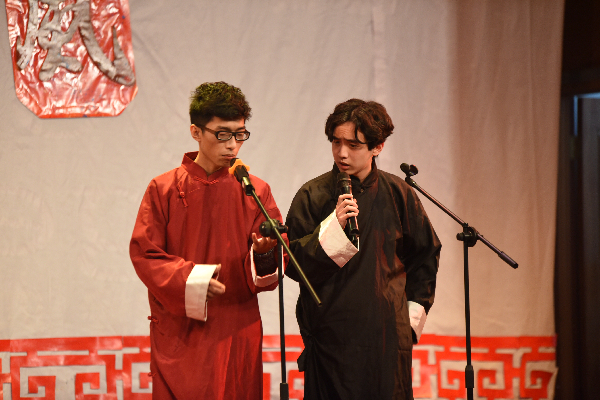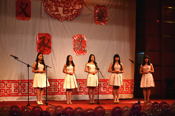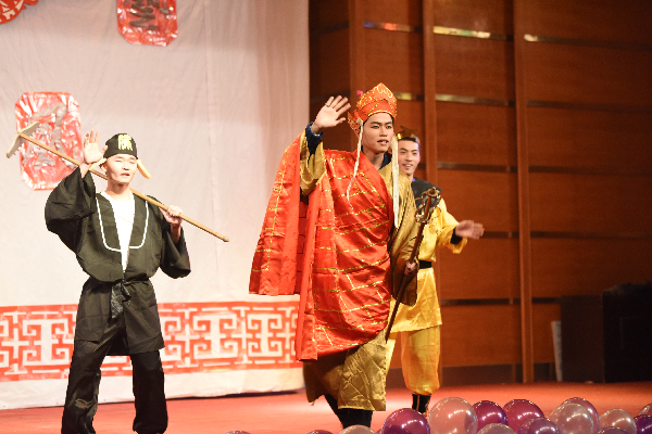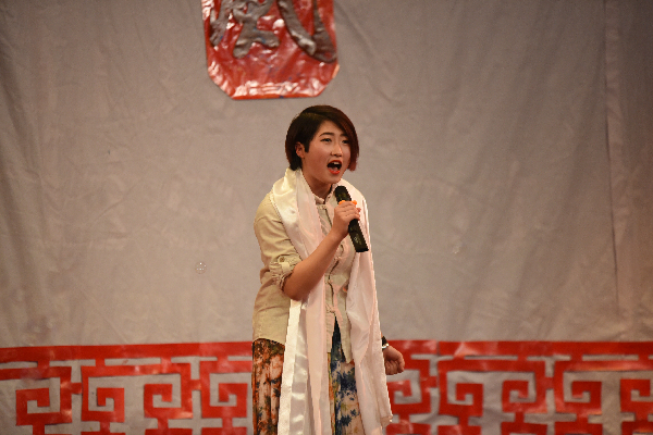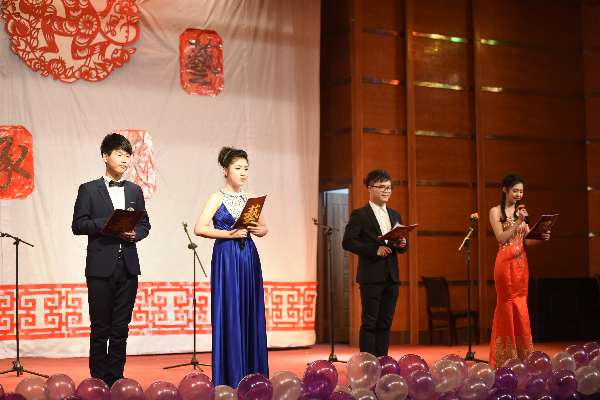 晚会以青春活力的啦啦操开场,一开始便赢得了同学们的热烈掌声。主持人宣布晚会正式开始,接着便是歌曲《辛德瑞拉》的表演,两位歌手倾情演唱,极大地调动了同学们的热情。语言类节目《新闻晚知道》幽默生动,舞蹈《uptown funk》热情洋溢,让同学们的欢呼声和掌声接连不断。随后,便是激动人心的抽奖环节,老师和同学们互动抽奖,让晚会气氛高涨。滑稽搞笑的话剧《大话西游》,澄澈高音的歌曲《走进西藏》,忧伤感人的歌曲《车站》,优美动人的舞姿《Di Di》让同学们的感情跌宕起伏,尽情享受。师生齐猜歌名,赢大奖,将现场氛围推向高潮。最后,晚会由文艺部声乐队《红河谷》收场,清脆的声音环绕着整个舞台。