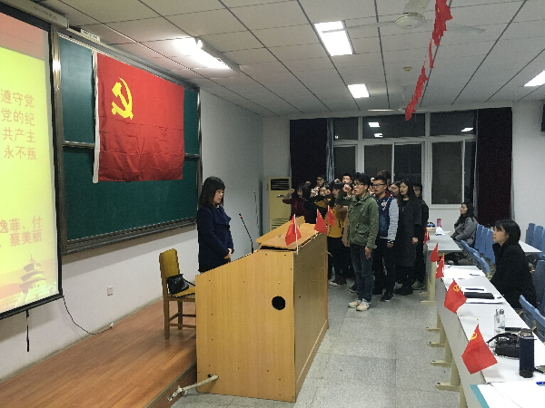 艺术院学生党员大会召开 2016-03-15 14:48:04 新党员宣誓 新党员宿舍挂牌 <<< 上一张 下一张 >>> 3月13日晚,艺术设计学院新学期党员全体大会在18栋616召开。党总支副书记杨琳、各辅导员及全体学生党员参加会议。 会议回顾总结了上学期艺术院党务学生工作情况,介绍新学期党务学生工作计划。同时表彰了一批优秀学生党员和班集体,并举行新党员在党旗下宣誓和新党员寝室挂牌仪式。 总支副书记杨琳作总结讲话,她强调了学生党员的思想行为管理和学习标准、目标,要求各位党员同学能在思想上、行动上感召其他同学,充分发挥党员的先进性和旗帜作用。 特约记者 高飞 编辑 子侃
