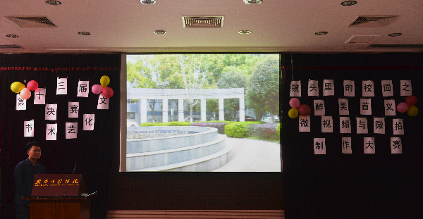 4月11晚,由信科院承办的学校第十三届文化艺术节“醉美首义”之微拍与微视频大赛决赛于11-106举行。校团委书记罗萍、信科院党总支副书记赵瑜等现场观赛。