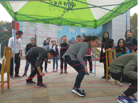 全体成员分为四小队,分别以红一、红二、红四方面军以及红二十五军的身份进行比赛。他们利用绳索、草地等方式来模拟长征路上的各种艰难环境,形成一条跨越校园的“长征路”。同学们从“瑞金”出发,“穿越封锁线”、“破译电报”、“飞夺泸定桥”、“过草地”,最终在“延安”会晤。虽是模拟场景,但参加的同学们一个个气喘吁吁,深切体会到了“长征路”的艰难。