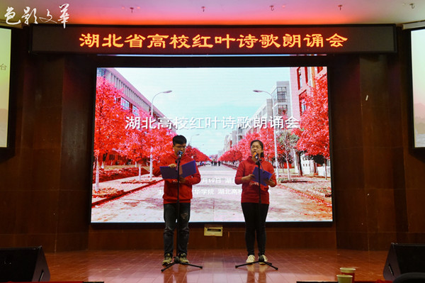 当晚,“湖北高校红叶诗歌朗诵会”在文华学院报告厅举行,中南民族大学、湖北经济学院、湖北第二师范学院等11所高校的代表参加活动,我校广播台表演诗歌朗诵《我的祖国》。伴着壮阔的音乐,表演者抑扬顿挫的声音和饱满的爱国情感寄托了对祖国深沉爱恋。活动结束后,文华学院广播台负责老师童银萍对我校广播台节目予以了高度评价。