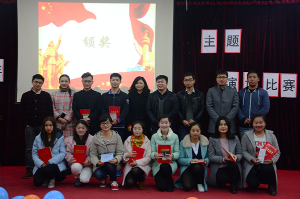 12月5日晚6点30分,由校团委主办、新闻与法学学院分团委学生会承办的纪念红军长征胜利80周年演讲比赛决赛在11栋106教室举行。校团委书记罗萍,新闻与法学学院党总支副书记吴世杰、分团委书记吴菁,辅导员易霜剑、唐见、张勇会以及汉语言专业董福升、袁循老师出席活动。