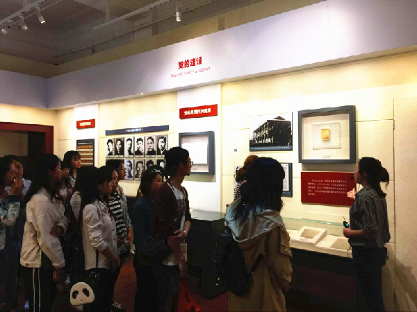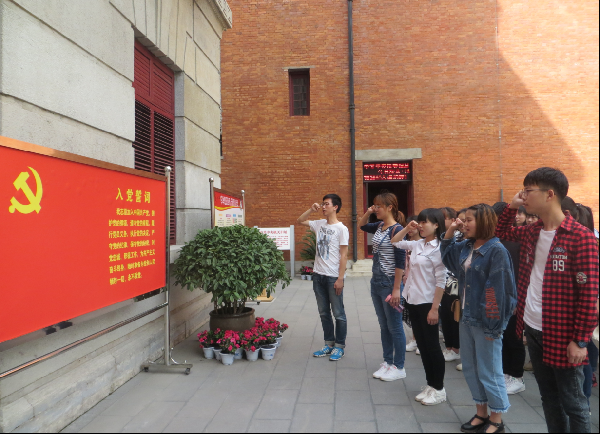 同学们首先参观了武汉中共中央机关旧址和《中国共产党章程》历程展览。在讲解员耐心全面的讲解下,同学们认真、有序地开展各项学习活动。随后,预备党员在学生党支部书记舒卓的带领下,面向党旗庄严宣誓。