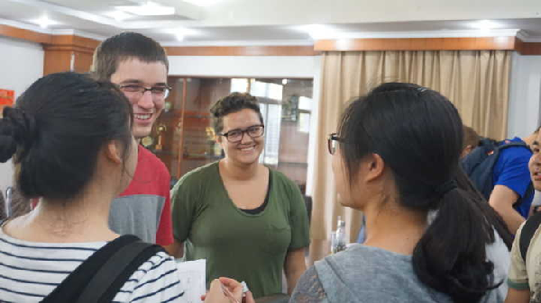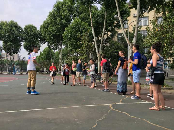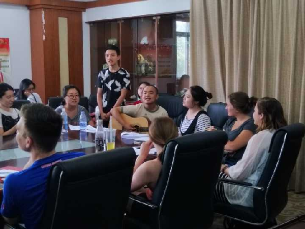 五月的太阳火辣辣的,但是外国友人似乎比太阳更加热情。一见面他们就亲切地和大家打招呼并介绍自己。随后,志愿者们也依次进行自我介绍,期间,时常听到一句幽默的话,引得大家哈哈大笑,场面十分活跃有趣。志愿者们在介绍过程中,还为外国友人带来了事先准备的